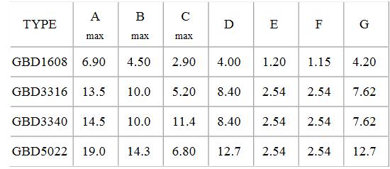 四、 貼片功率電感GBD封裝尺寸列表